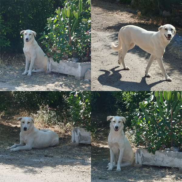 Born to a stray mother and unknown father, she was born and lives freely with her brother and mother in the settlement of Ano Epidavros, just outside Ancient Epidavros. She has been spayed, but not vaccinated, nor microchipped, but she receives pills for parasites (internal and external). She is fed by a volunteer who lives nearby and is looking for the right person for a serious relationship.