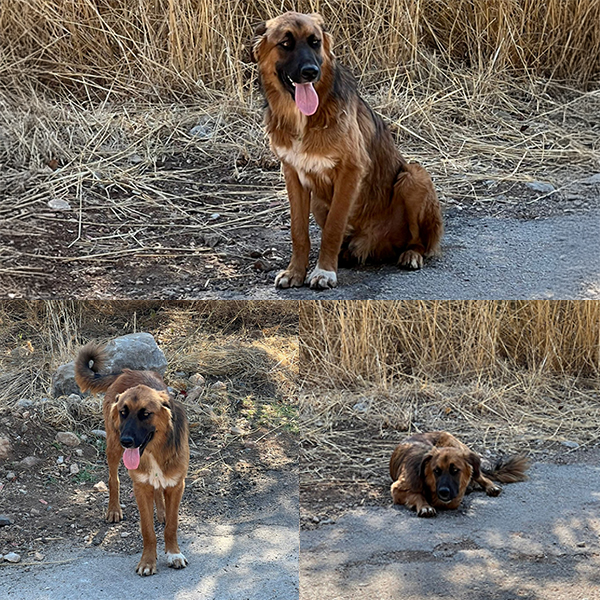 Pluto was born and lives in Ano Epidavros, a settlement just outside Ancient Epidavros. His mother was a stray dog and his father was probably a wolfdog. He roams freely with his sister and mother, is neutered, unvaccinated, without a microchip, and has been given pills for parasites (internal and external).
